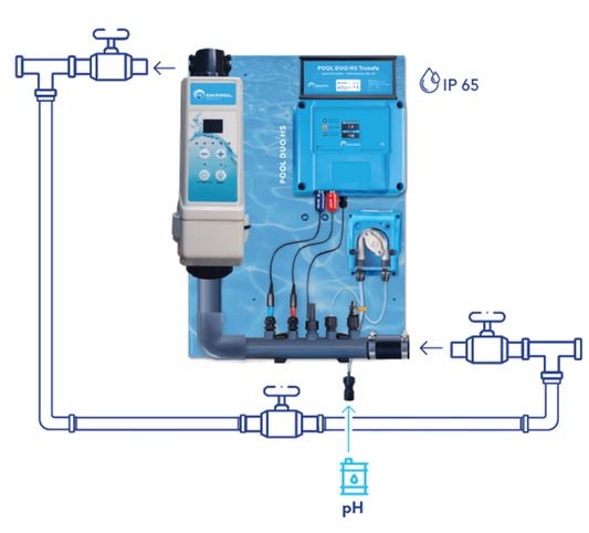 Chloorgenerator HS voorgemonteerd in box met pH en RX regeling - zwembad tot 100m³