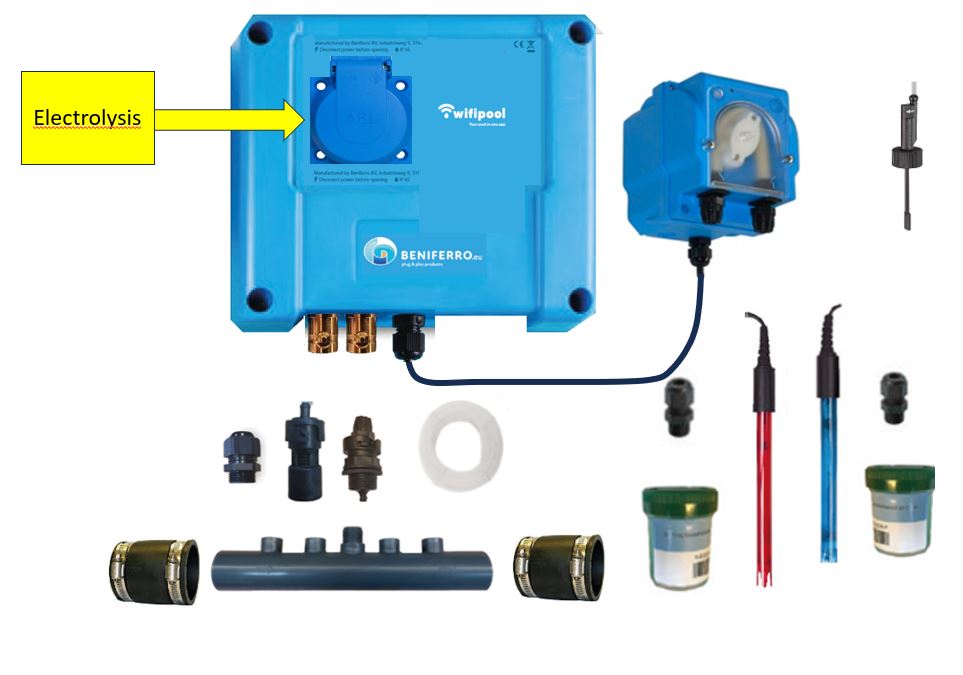 De basis van dit apparaat is de Wifipool Gen 2 printplaat, waarmee u een volledig zwembad kan sturen. Met deze printplaat is het steeds mogelijk volgende metingen uit te voeren : pH, RX (chloor), flow, niveau (x3), temperatuur(x3), druk en conductiviteit (zoutgehalte) metingen. Daarenboven kunnen er 4 controle apparaten (frequentieregelaar, peristaltische pompen, zoutelectrolyse, UV lamp, automatische kraan, ...) aangesloten worden.